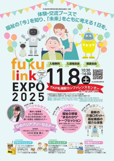 北海道身体障害者福祉施設協議会主催の、fukushi link EXPO2025に社会福祉法人禎心会「ケアセンター栄町」が参加します。